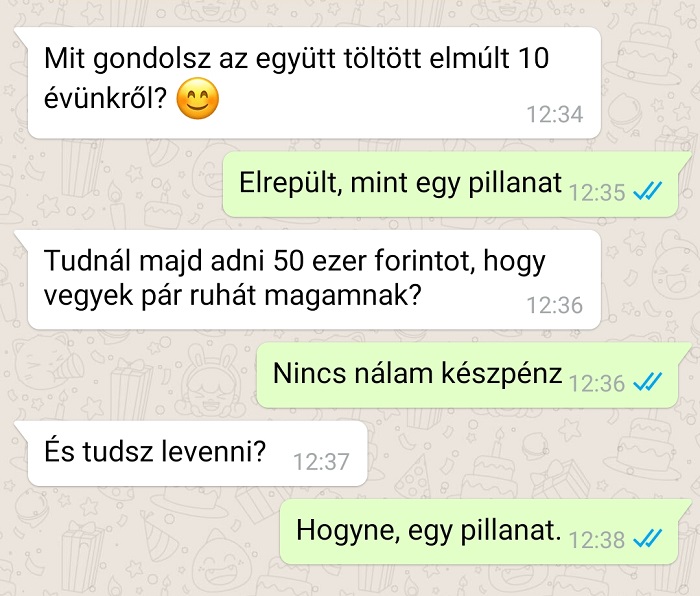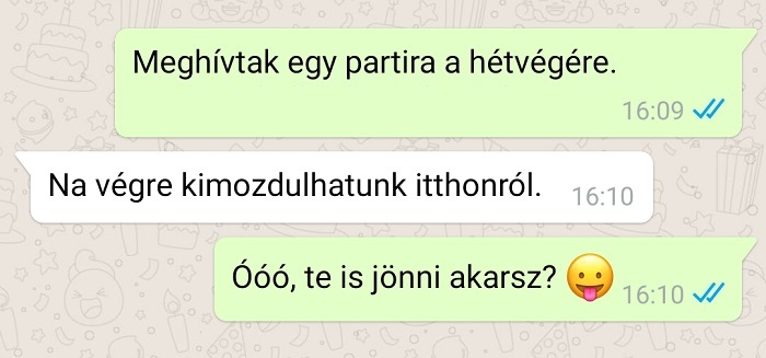 10. Ő ugyan nem mondta, hogy ketten mennek a buliba.
