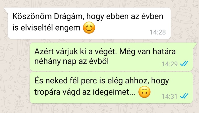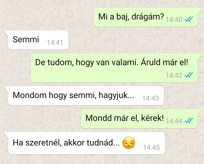 A házastársak közötti beszélgetések minősége sokat elárul egy kapcsolat egészségéről. Amikor egy pár képes nyíltan, gátlások nélkül kommunikálni, és nincs köztük olyan téma, amiről ne lehetne szót ejteni, az már komoly alapot jelent egy harmonikus és hosszú távon működő házassághoz. Ha pedig mindketten értik a humort, és időnként játékos évődéssel is színesítik a diskurzust, akkor jó eséllyel nem unatkoznak együtt, és segítenek egymásnak kizökkenni a hétköznapi taposómalomból. Azért nem árt, ha tisztában vannak azzal is, hogy hol vannak a másik határai – mert néha még a viccelődés is átcsaphat kellemetlenségbe, ha túl messzire megy.