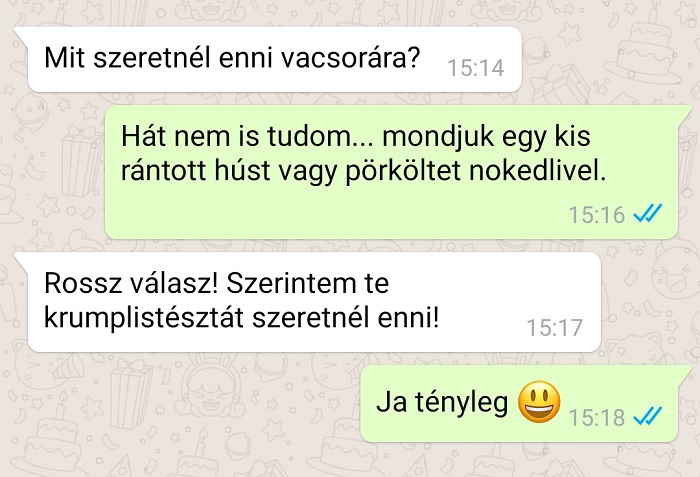 1. A feleség jobban tudja, hogy a férje valójában mit is szeretne enni vacsorára.