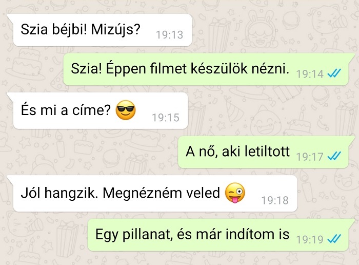 1. Talán még most is azt várja, hogy a lány visszajelentkezik, és együtt megnézik azt a bizonyos filmet. De azóta már lement a stáblista is.