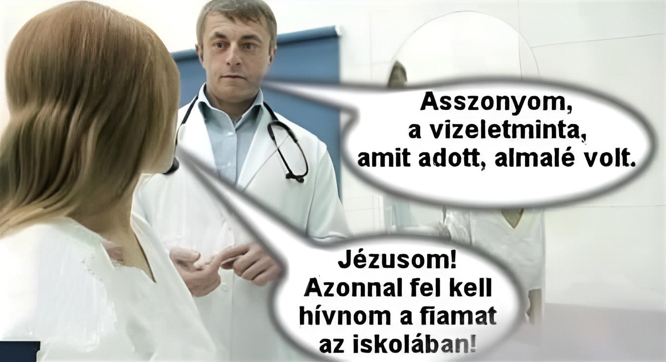 – Pista bácsi, itt egy pohár, menjen át a másik szobába, pisiljen bele a pohárba, aztán hagyja itt az asztalon! – mondja neki a doki.