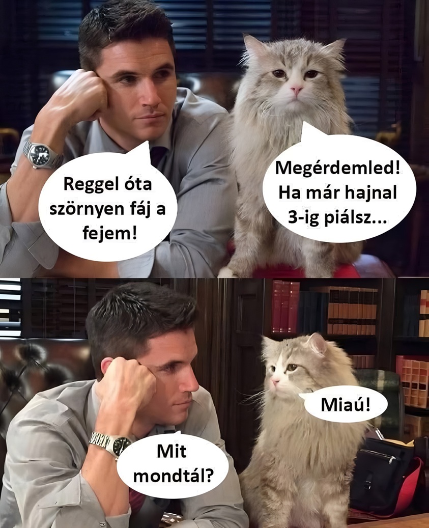 Belerúg a másikba, az elkezd nyávogni. – gondolja ez biztos csak egy macska.