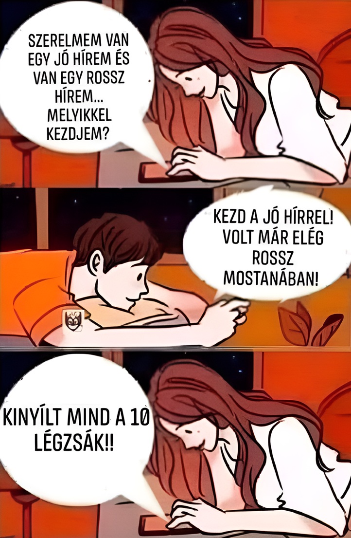 – Egy jó meg egy rossz hírem van. Melyiket akarja hallani előbb?
